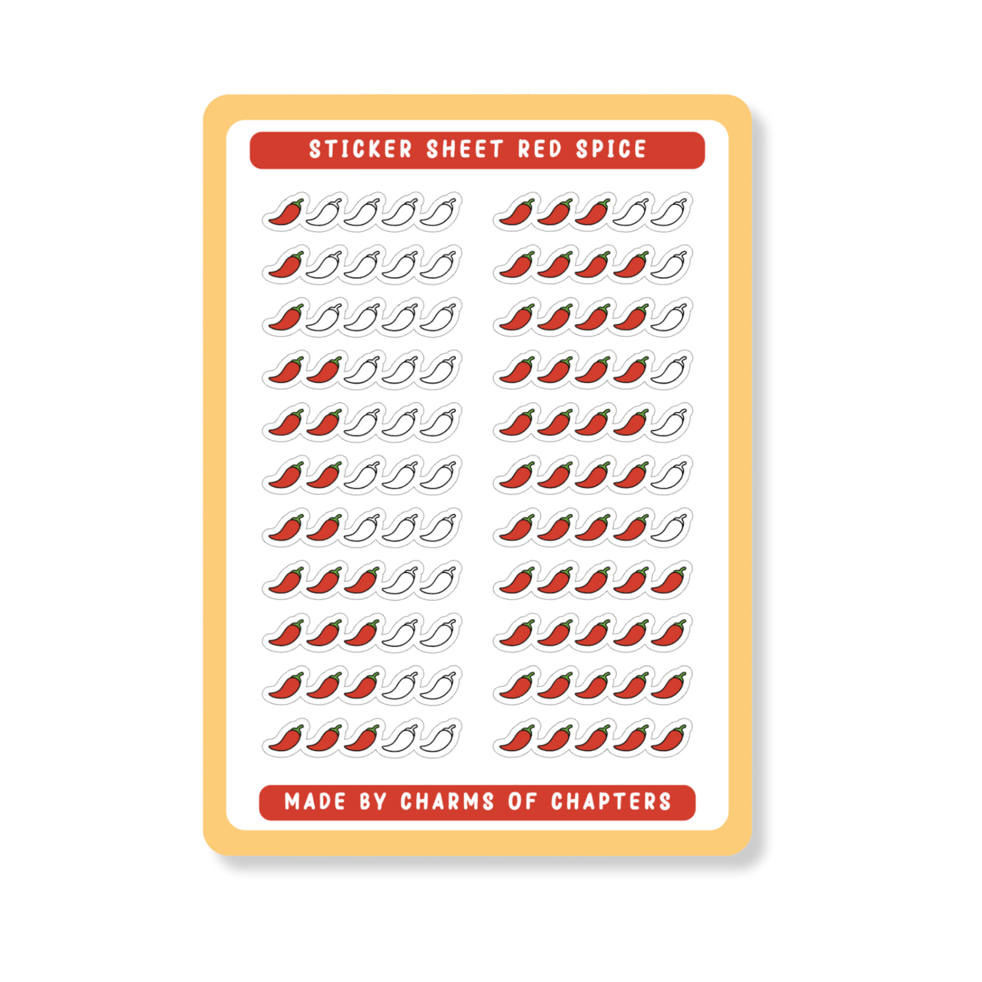 Keep track of the spice levels of your books with these colored pepper stickers! From mild to extra spicy, stick them in your book journal to mark your favorite steamy reads.