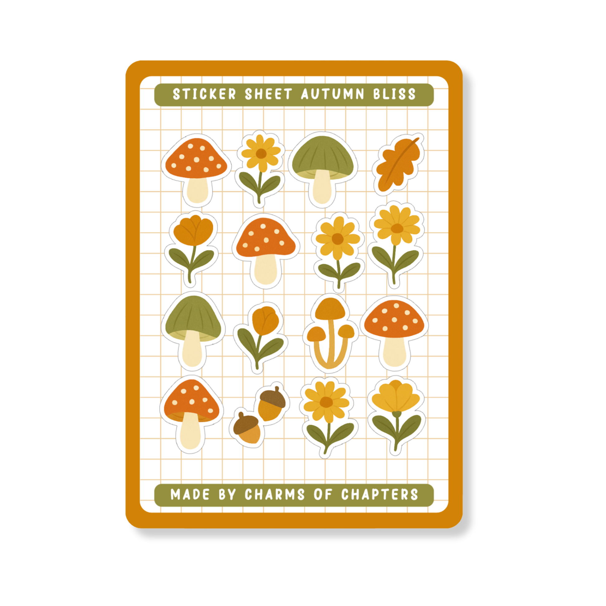 Vier de magie van de herfst met dit vrolijke stickervel vol paddenstoelen, bloemen, bladeren en eikeltjes. Perfect om je journalpagina’s, brieven of cadeautjes een speelse autumn touch te geven.